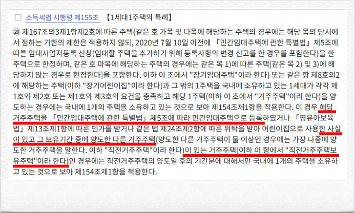 소득세법시행령 제155조 제20항에 보면, '직전거주주택보유주택'이라는 용어가 등장하는데, 세법 용어가 많이 낯설고 어려울 수 있어..