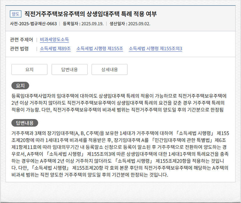 그 요지는 지금 양도하고자 하는 주택이 직전거주주택보유주택인 경우에, 2년 거주요건을 상생임대주택요건충족으로서 대신할 수 있는지에 대한 것입니다
