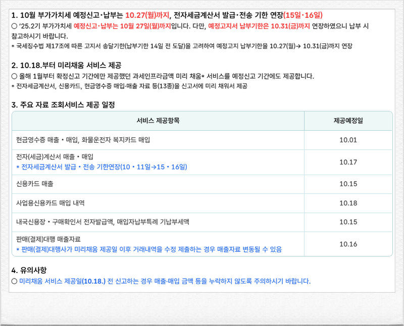 3. 부가세 예정신고 및 납부 마감 (10월 27일)