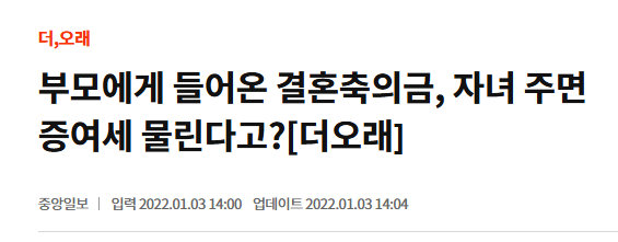 축하금으로 2천만원을 자녀에게 이체한다면 증여지만, 그돈으로 혼수용품을 사주시면 증여에서 제외될 수 있습니다.