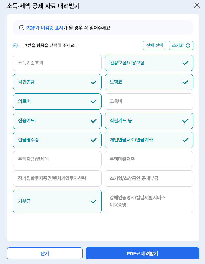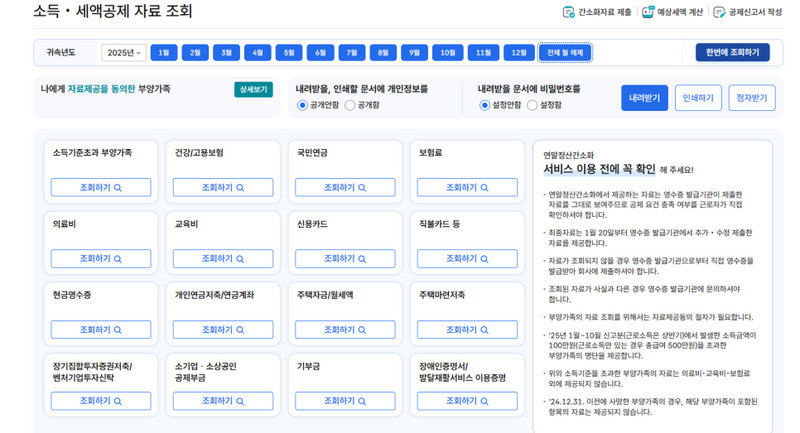 * 조회되지 않는 공제 자료는 근로자가 직접 수집해야 합니다.