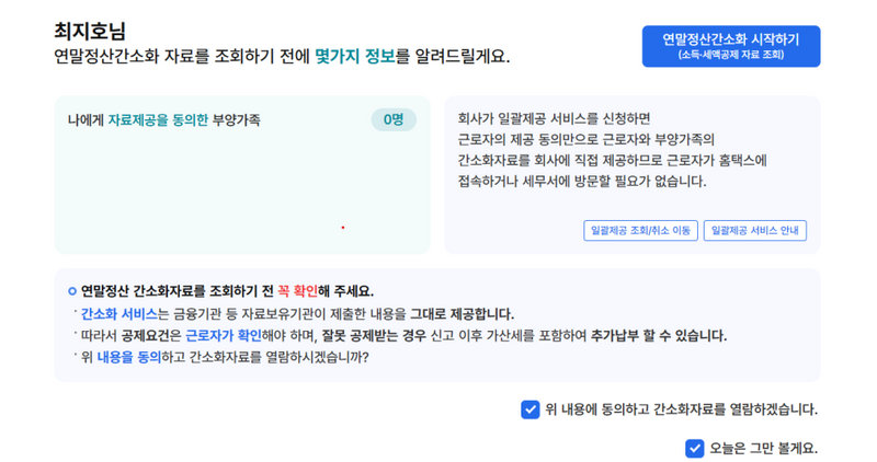 * 부양가족의 자료 조회는 부양가족 본인의 사전동의가 필요합니다. 부양가족이 동의하면 근로자는 가족의 공제 자료에 대해 조회 가능합니다.