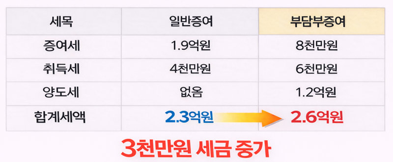 하지만 부담부증여가 일반증여에 비해 항상 유리한 것은 아닙니다.