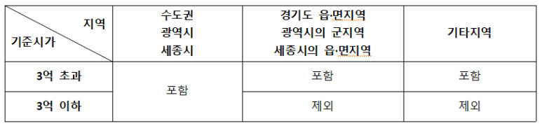 다만, 경기도의 읍 · 면 지역과 그 밖의 지역에 보유하고 있는 주택은 기준시가 3억 원을 초과하는 경우에만 중과대상 주택 수에 포함됩니다.