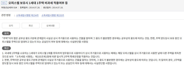 대부분의 판례가 주거용 임대 후 공실 상태 오피스텔을
